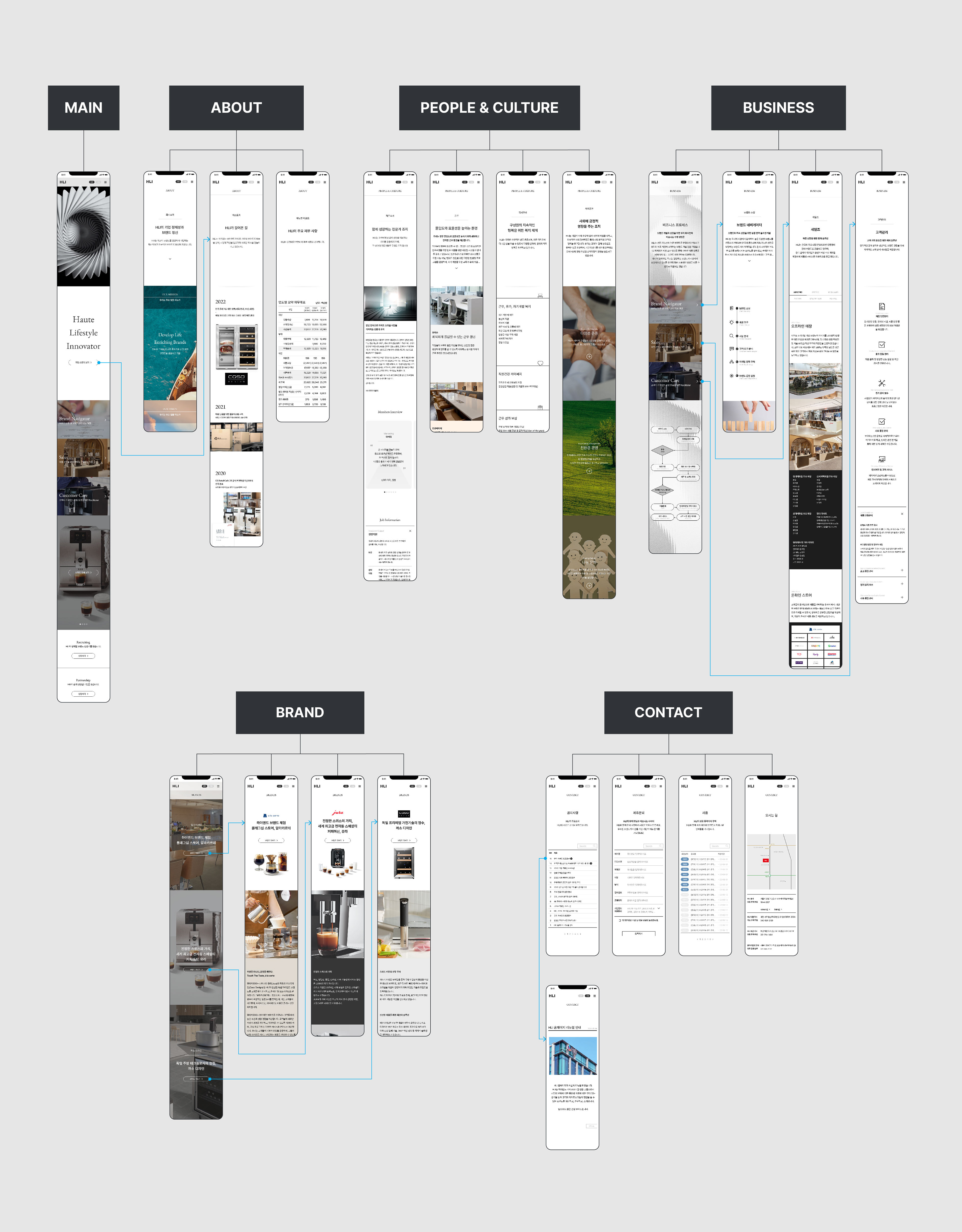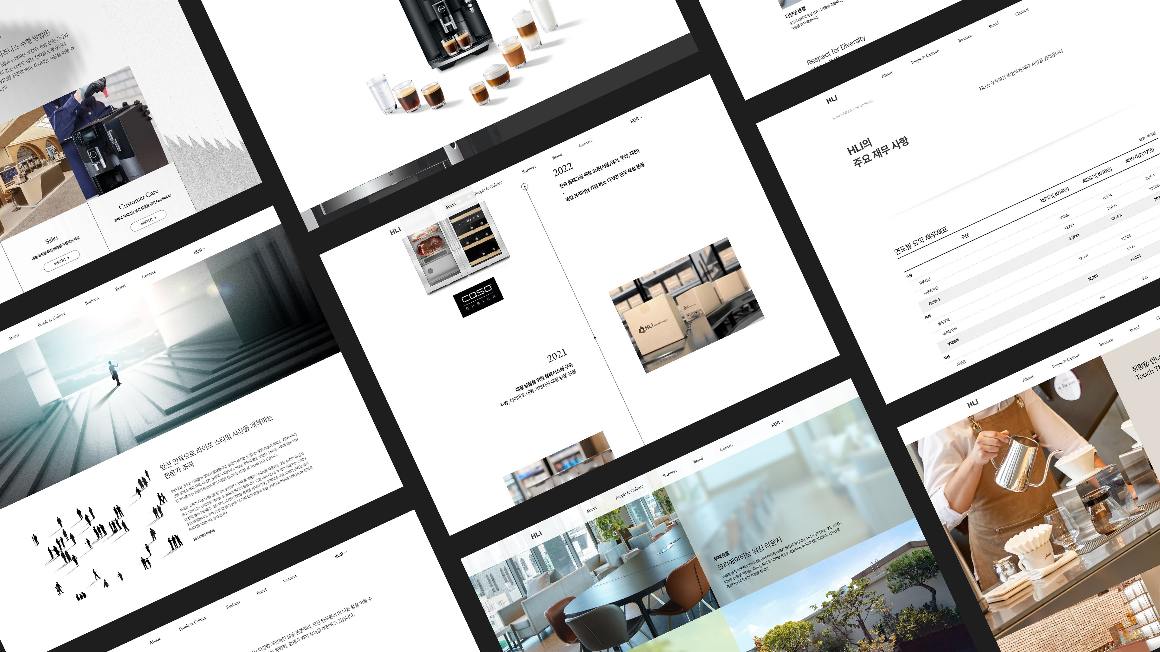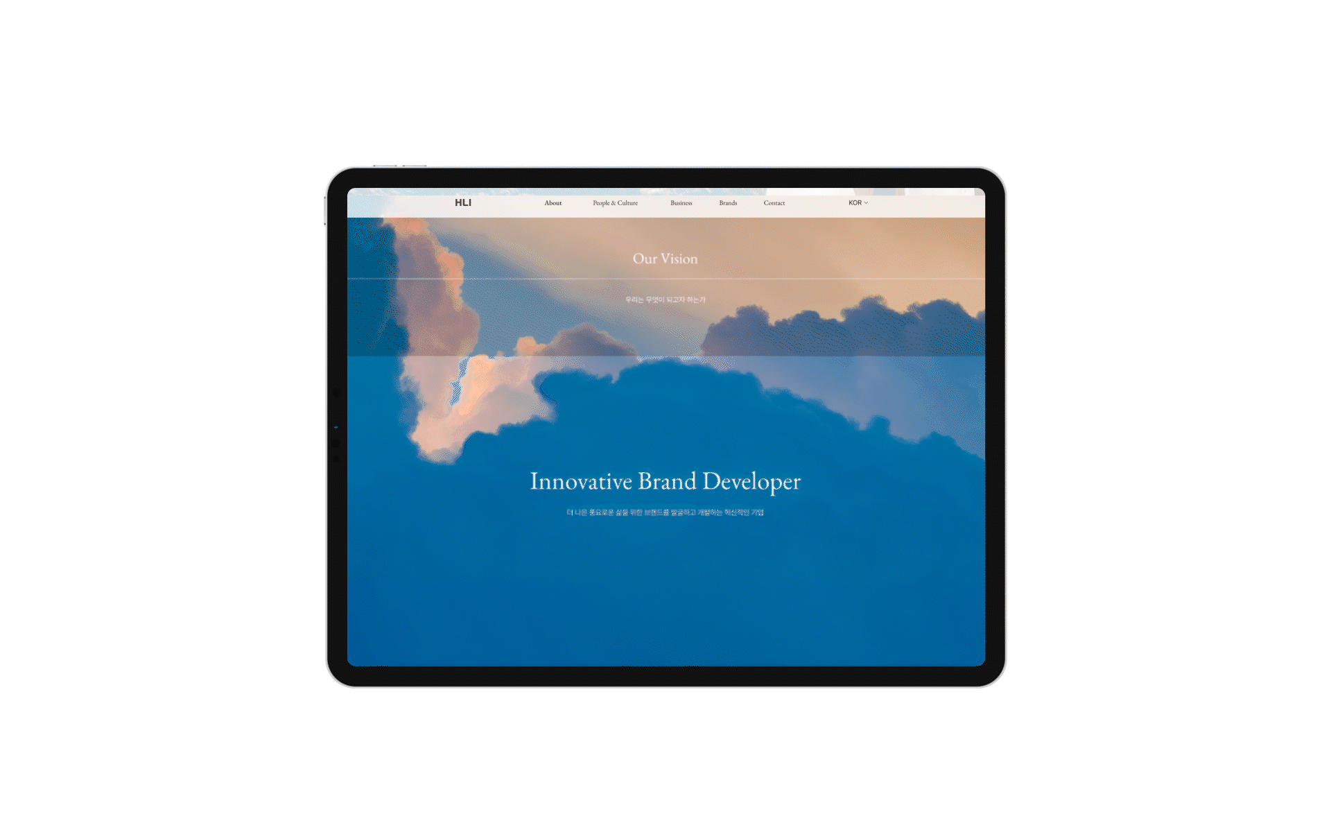 HLI는 고객의 삶을 더 아름답고 윤택하게 만드는 브랜드를 발굴·개발하는 브랜드 개발 전문 기업입니다. 이 정체성이 첫 화면에서 선명하게 인지되도록 GNB 컨설팅에서 브랜드 필름까지 기업의 전반적인 아이덴티티를 홈페이지에 구현하였습니다.